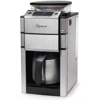 No other coffee maker includes all of the great features found in the stainless steel Capresso CoffeeTEAM PRO Plus Therm. This version features a 10 cup thermal carafe that keeps coffee hot for hours. The built-in conical burr grinder automatically self cleans after each cycle.