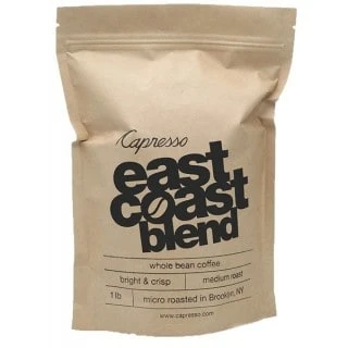 Capresso East Coast is medium roasted blend of South American coffee beans blended with Brazilian peaberries. The result is a versatile coffee that is bright and crisp with a smooth, balanced flavor.
