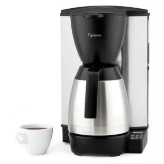 A beautiful high-gloss stainless steel coffee maker, The Capresso MT600 Plus has a thermal carafe that keeps coffee hot for up to 4 hours. With a 10 cup brewing capacity in under 8 minutes, the quality of coffee is superb. The easy-to-clean polished surface is specially treated to maintain its luster. Stainless steel-lined heating system eliminates water contact with aluminum and reduces the need for decalcifying. With a charcoal water filter that removes up to 82% of chlorine from tap water and indicates when it needs to be replaced, the quality of this Capresso MT600 Plus coffee maker is up to par with the best on the market.