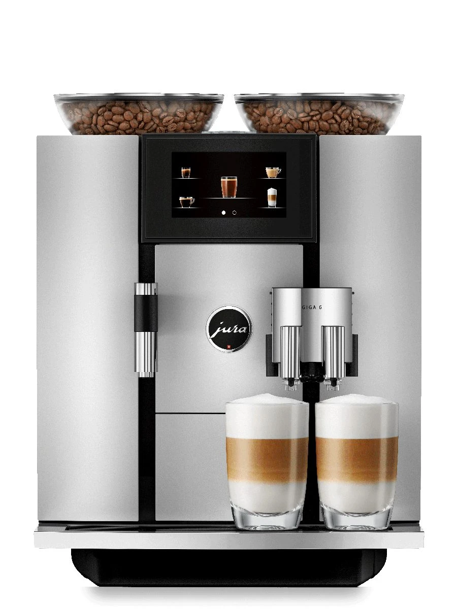 #html-body [data-pb-style=UB8MOLO]{justify-content:flex-start;display:flex;flex-direction:column;background-position:left top;background-size:cover;background-repeat:no-repeat;background-attachment:scroll;border-style:none;border-width:1px;border-radius:0;margin:0 0 10px;padding:10px}#html-body [data-pb-style=KXXT50H]{border-style:none;border-width:1px;border-radius:0;margin:0;padding:0}Large, 4.3 high-resolution touchscreen color display with sophisticated operating concept for intuitive navigation Artificial intelligence uses a self-learning algorithm to adapt the start screen to personal preferences Two ceramic disc grinders with Automatic Grinder Adjustment (A.G.A.©) for perfectly ground coffee every time Ultimate coffee quality thanks to Pulse Extraction Process (P.E.P.®)Completely new inner workings including two thermoblocks, two pumps and two fluid systems One-Touch Americano function for light, aromatic, long coffees Coffee and hot milk / milk foam can be prepared simultaneously to create flawless trend specialties Jug of coffee will grind and then brew up to 5 shots with one touch5-star handling, even during cleaning and maintenance Swiss Made Compatible with Wi-Fi Connect for use with J.O.E.® (JURA Operating Experience) app Wi-Fi Connect is NOT included with the purchase of Factory Refurbished GIGA 6