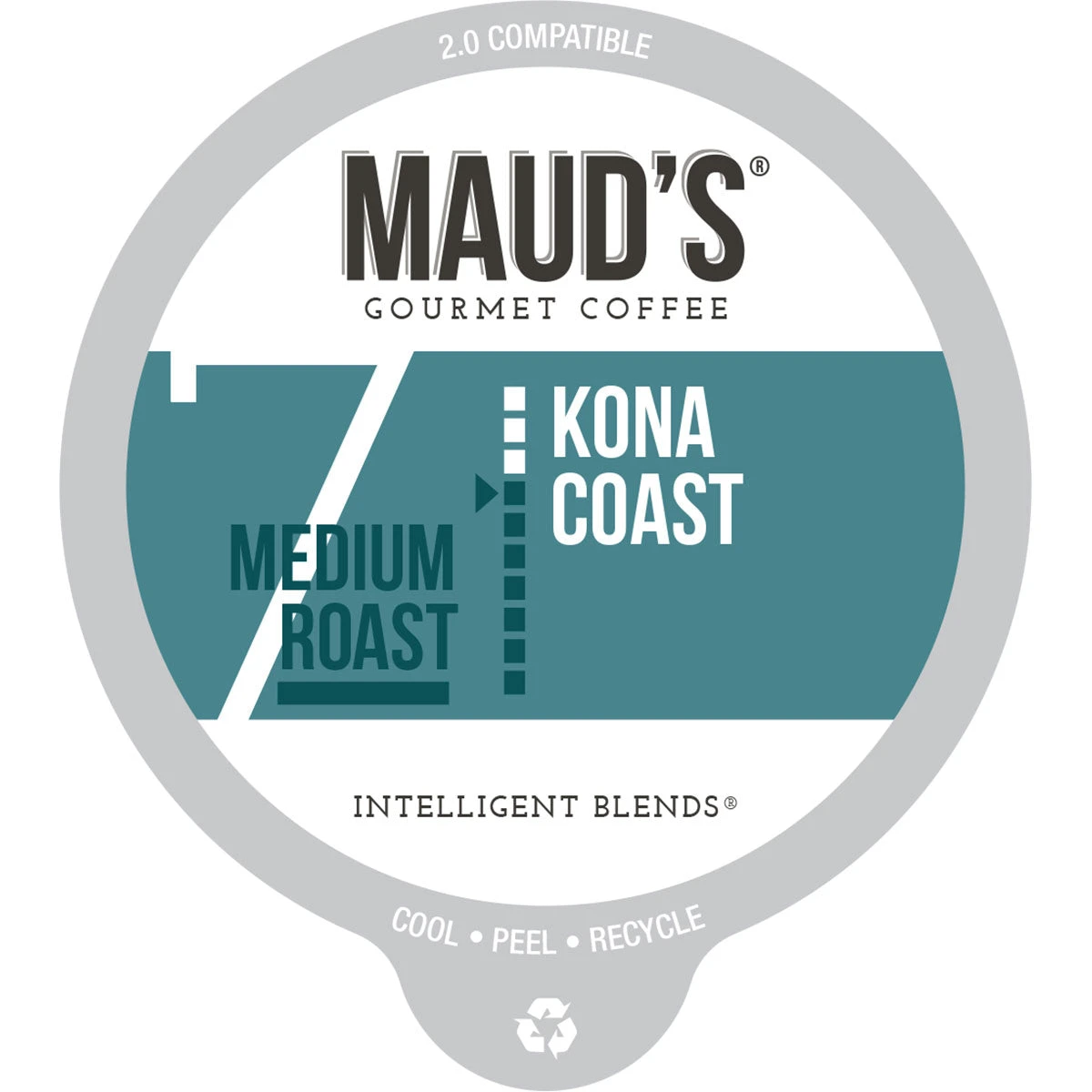 Maud’s “Kona Coast” Kona Blend Medium Roast coffee is a rich medium roast with a smooth heavy body. This rich, low-acidity coffee is roasted to a perfect dark brown bean and has delicious chocolate-nutty undertones.