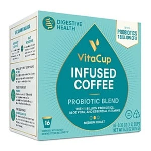 Although VitaCup has been around for less than 2 years, they’ve achieved phenomenal popularity within the health conscious coffee world. Their success has been built on producing vitamin-infused coffee that tastes better than high-end gourmet coffee. That’s not an easy thing to accomplish especially in the uncompromising world of coffee lovers. VitaCup’s offers a line of coffee pods / K Cups each of which addresses a specific area of health. Their latest product is the VitaCup Probiotic Blend and we couldn’t be more excited about it. If you’re a coffee lover actively looking to improve their digestion, then we’d highly recommend checking out this blend. This is a medium roast that uses 100% Arabica beans from Brazil and Mexico. The end brew is a refined and mellow coffee that still has distinct depth to it.