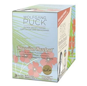 - Wolfgang Puck Hawaiian Hazelnut RealCups are a flavored light blend